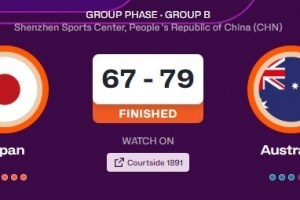 体育资讯7月15日讯 女篮亚洲杯小组赛,日本女篮下半场崩盘67-79不敌澳大利亚。